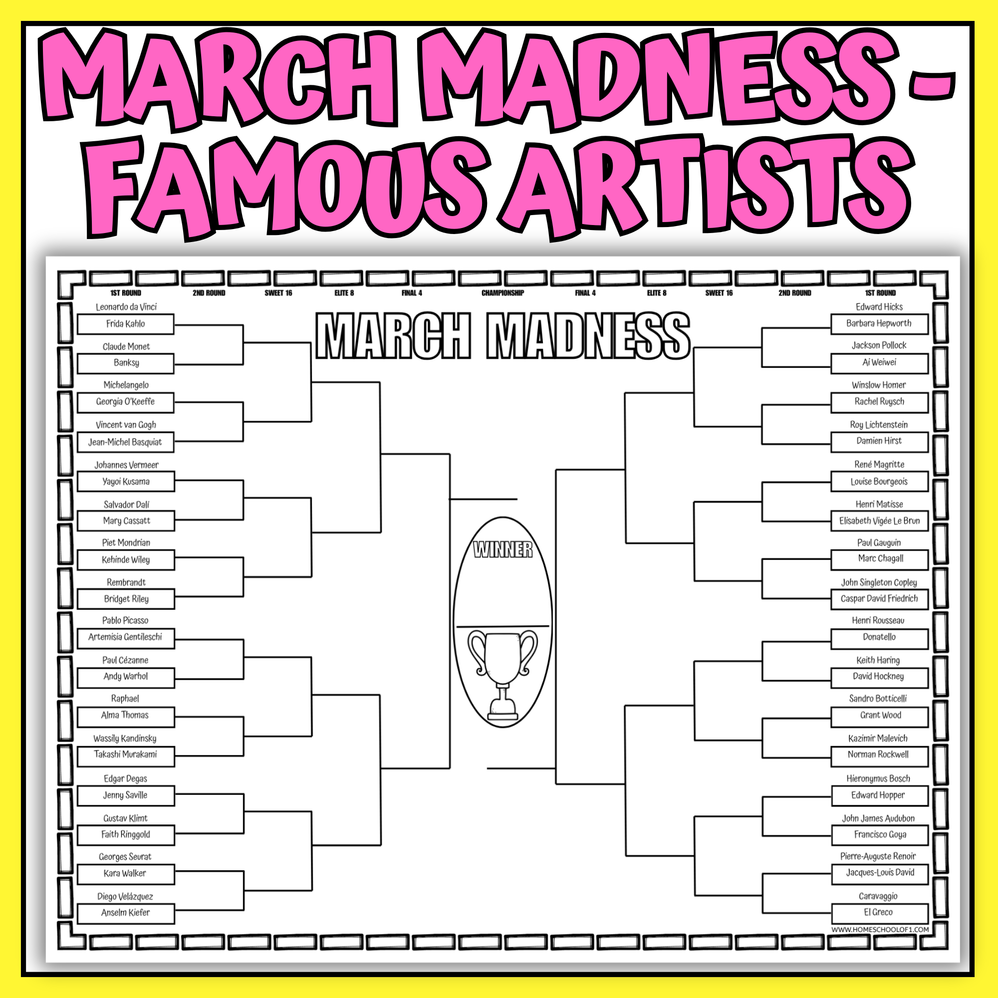 March Madness Art Bracket: Famous Artists Tournament | Art History Activity