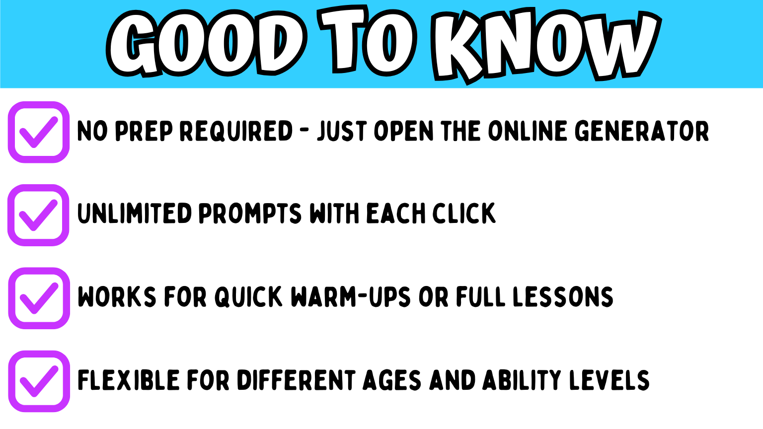 The first page includes direct access to the generator, making it easy to use in the classroom, at home, or independently.